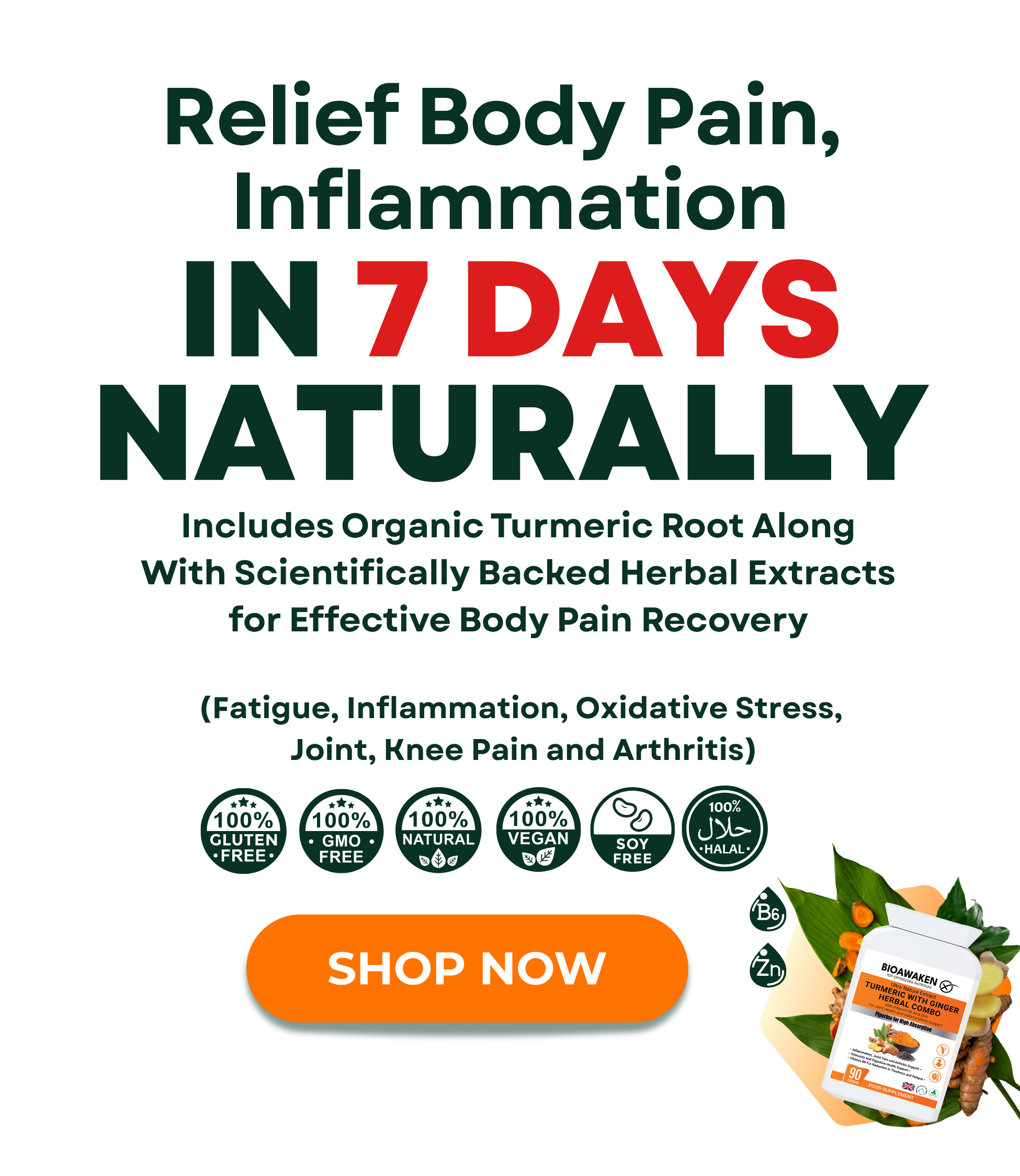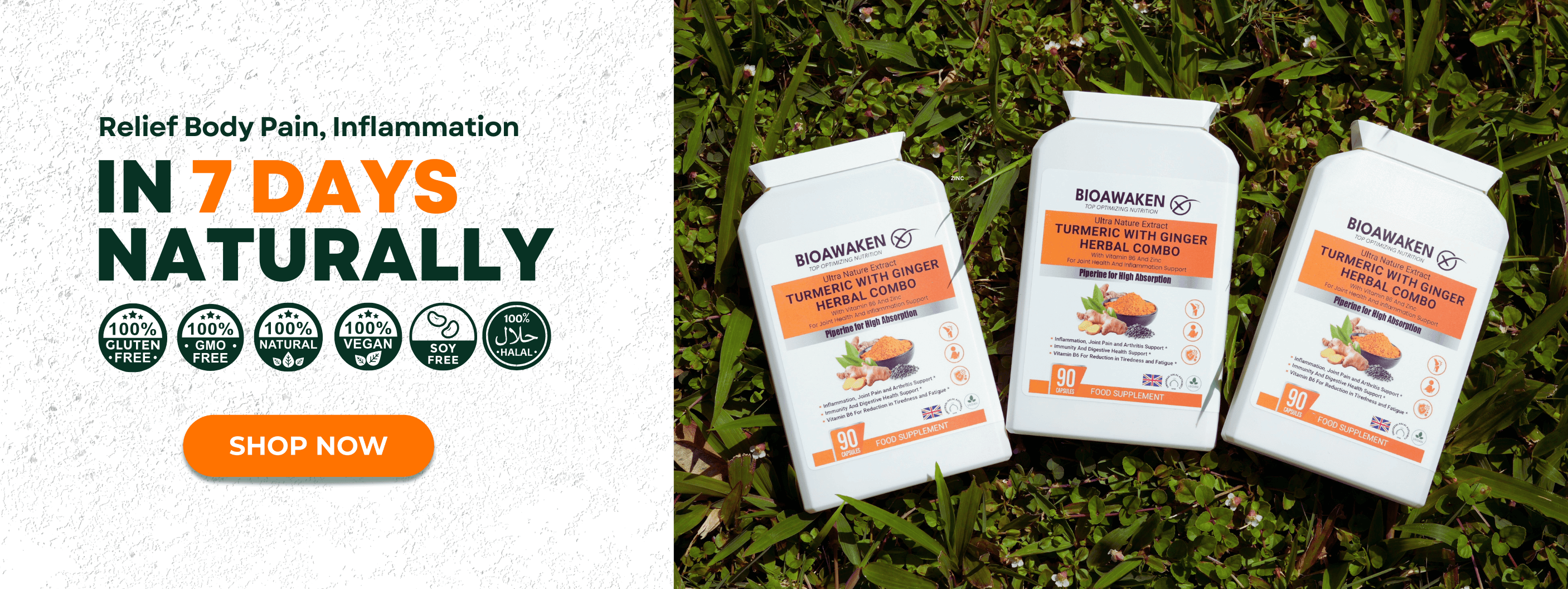 Our BioAwaken Turmeric & Ginger is different. It’s designed to support pain recovery with high-strength curcumin and gingerol, delivering strong anti-inflammatory and pain-relief benefits.