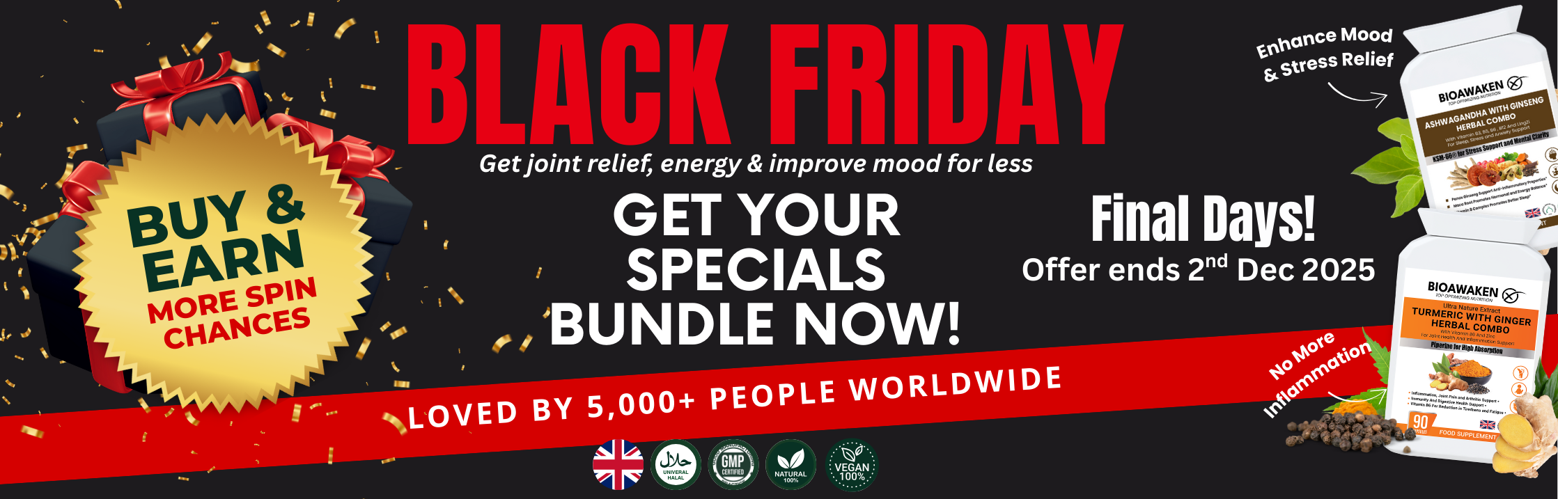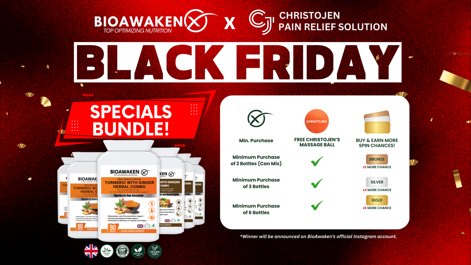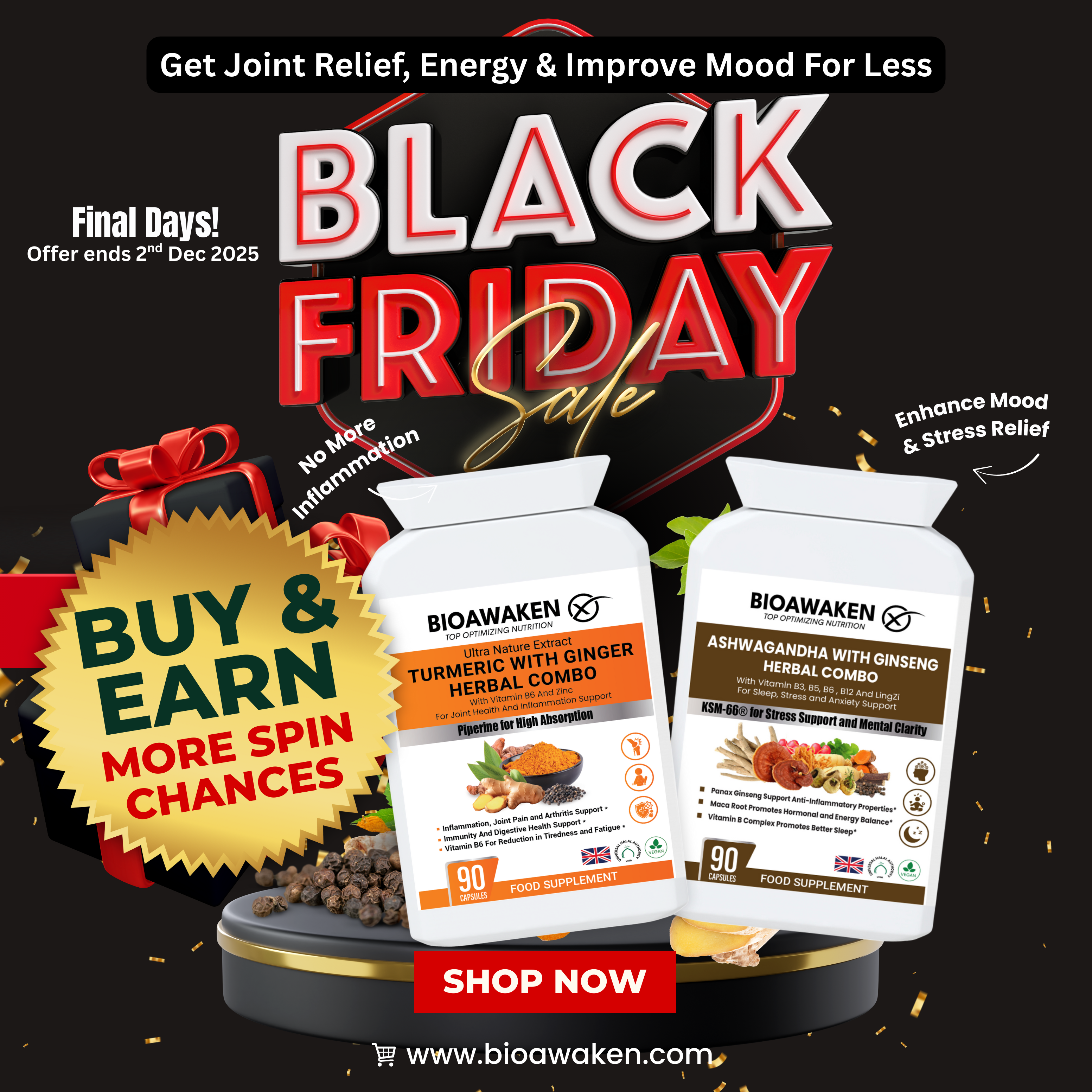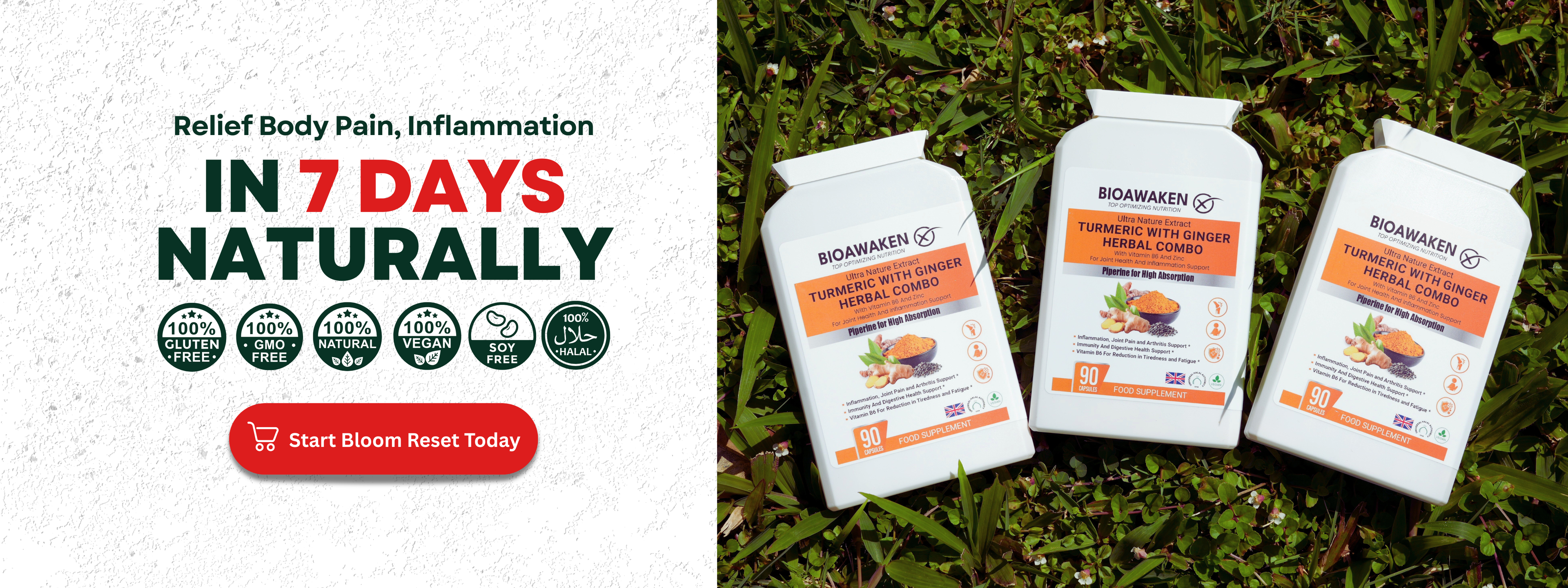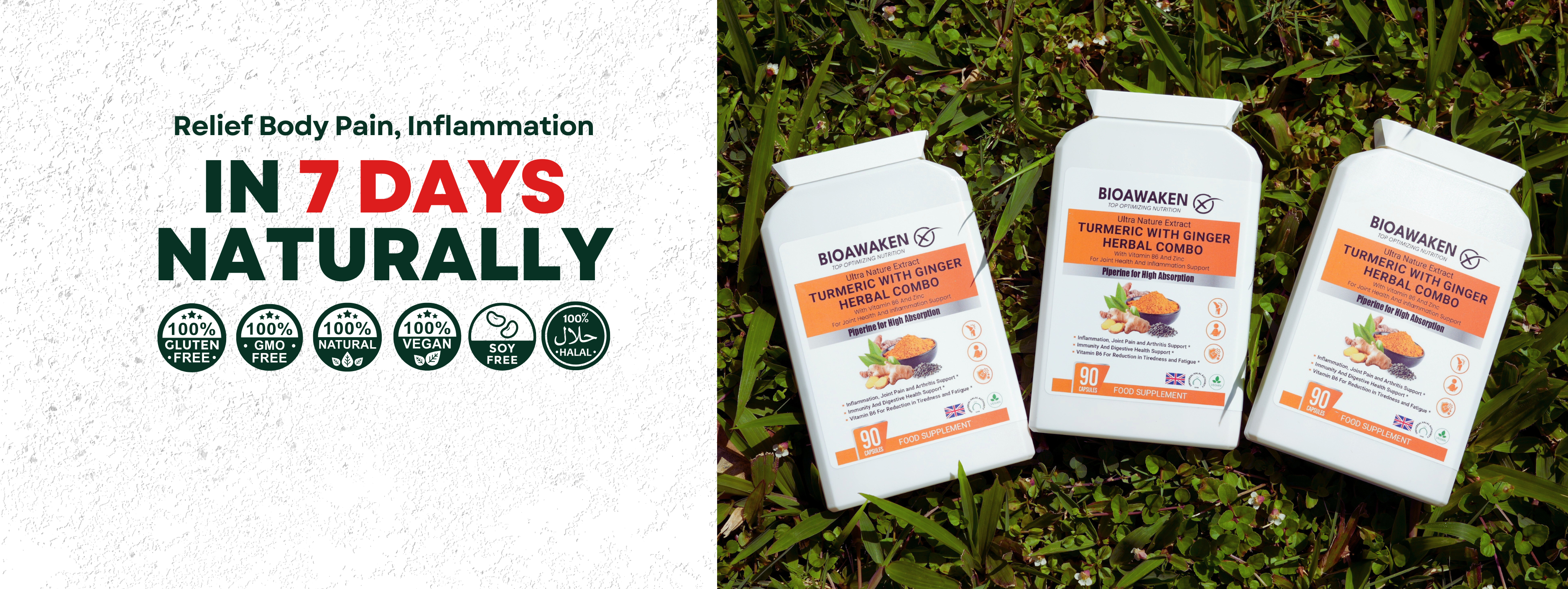 Our BioAwaken Turmeric & Ginger is different. It’s designed to support pain recovery with high-strength curcumin and gingerol, delivering strong anti-inflammatory and pain-relief benefits.